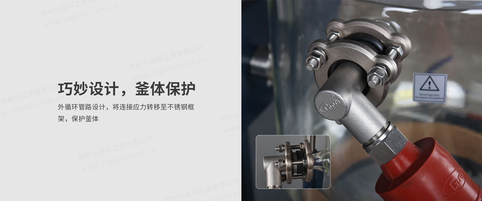 ● 夹套进、出液口连接不锈钢保温软管,消除进出液口应力。