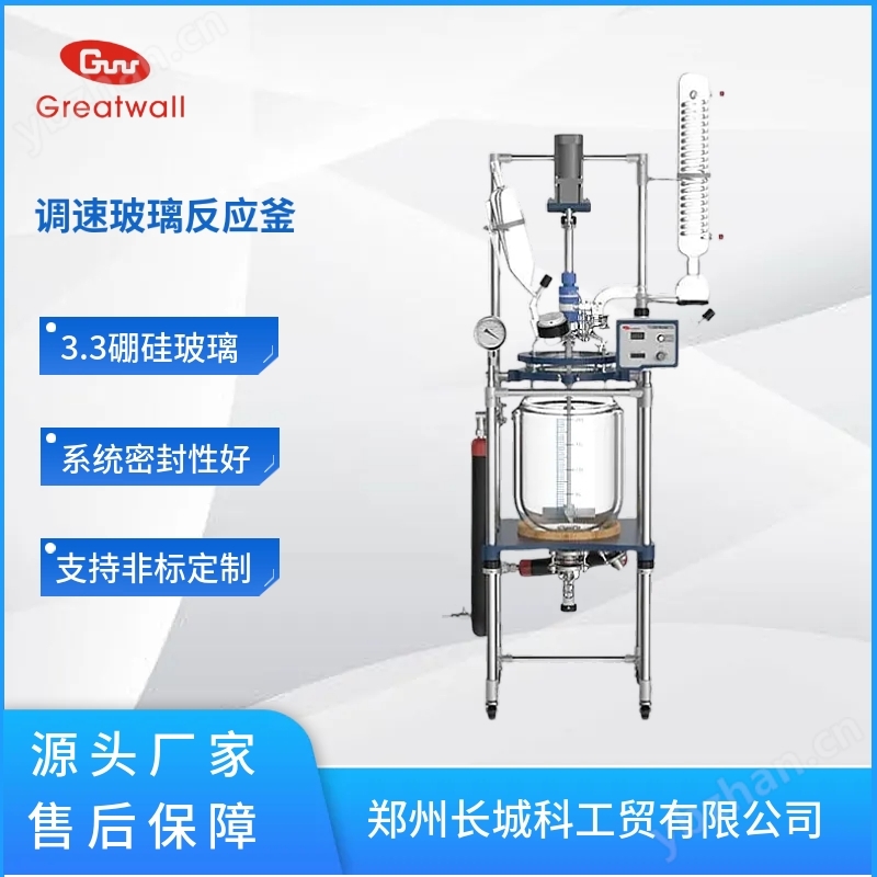 调速玻璃反应釜主要用于物料合成、蒸馏、浓缩等实验,根据需要可将釜内抽至负压状态,满足实验条件,可通过调节恒压漏斗或加料瓶上的调节阀控制物料均匀滴加,双层反应釜釜体有内外两层,可通过向夹套内注入一定温度的循环液,来满足实验的温度需求;三层反应釜可以在内层夹套通入循环液,外层夹套抽成负压状态来实现保温,同时还便于观察釜内物料反应情况。