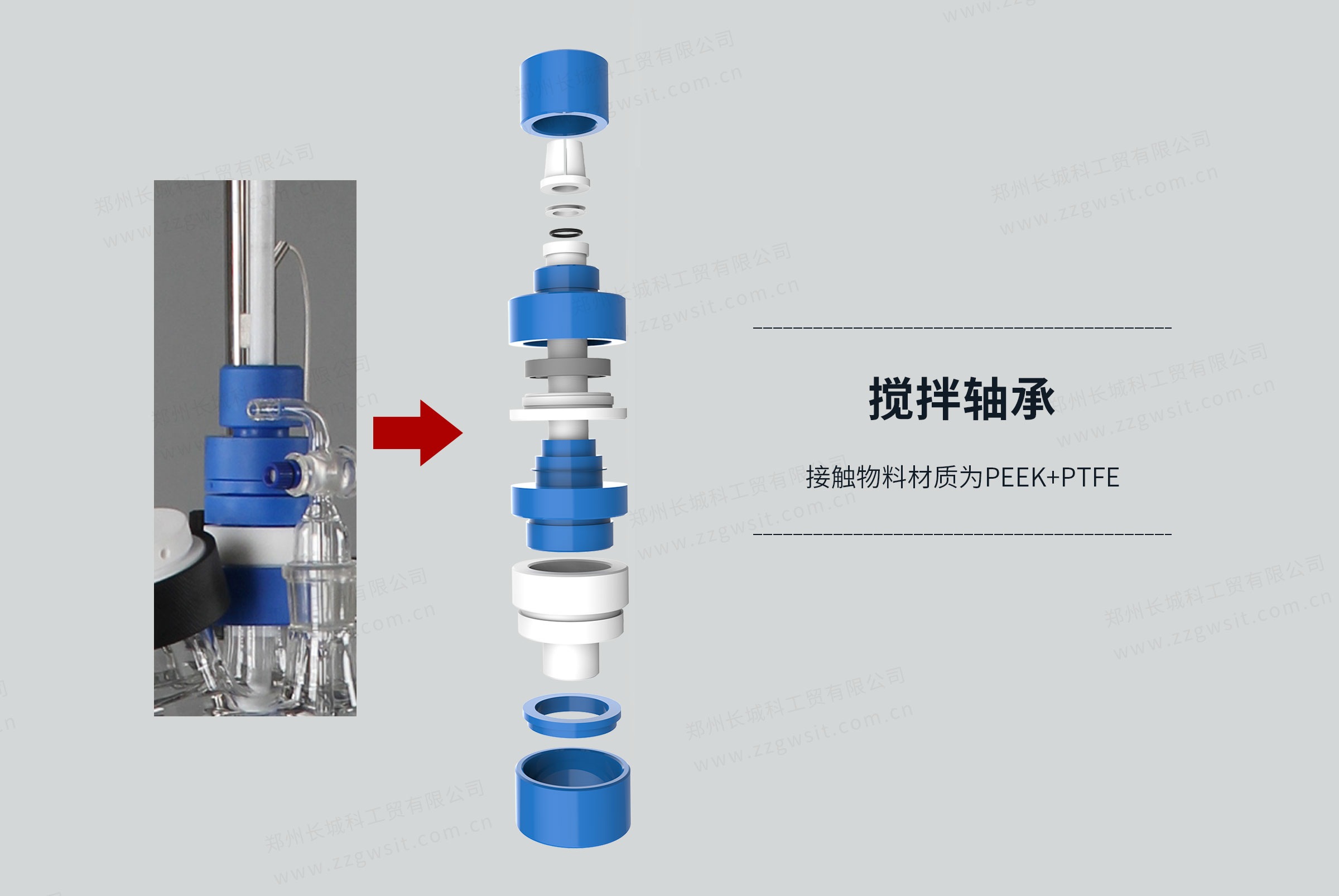 ● 搅拌桨的叶片采用聚四氟乙烯材料制作;搅拌轴采用06Cr19Ni10,外包聚四氟乙烯,强度高,耐腐蚀性强。